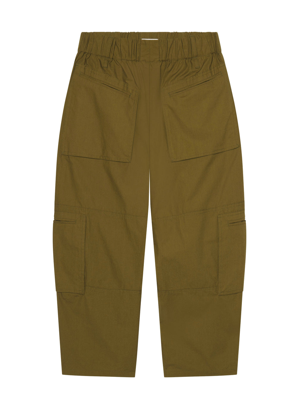 The Owen Pant is crafted from Italian polished cotton poplin—a crisp, breathable fabric with gentle structure and a refined, smooth hand—in an earthy green hue. This relaxed silhouette features exaggerated utility pockets, a mid-rise elastic waistband, and subtle zip vents at the hem for customizable shape. Shop Pants.