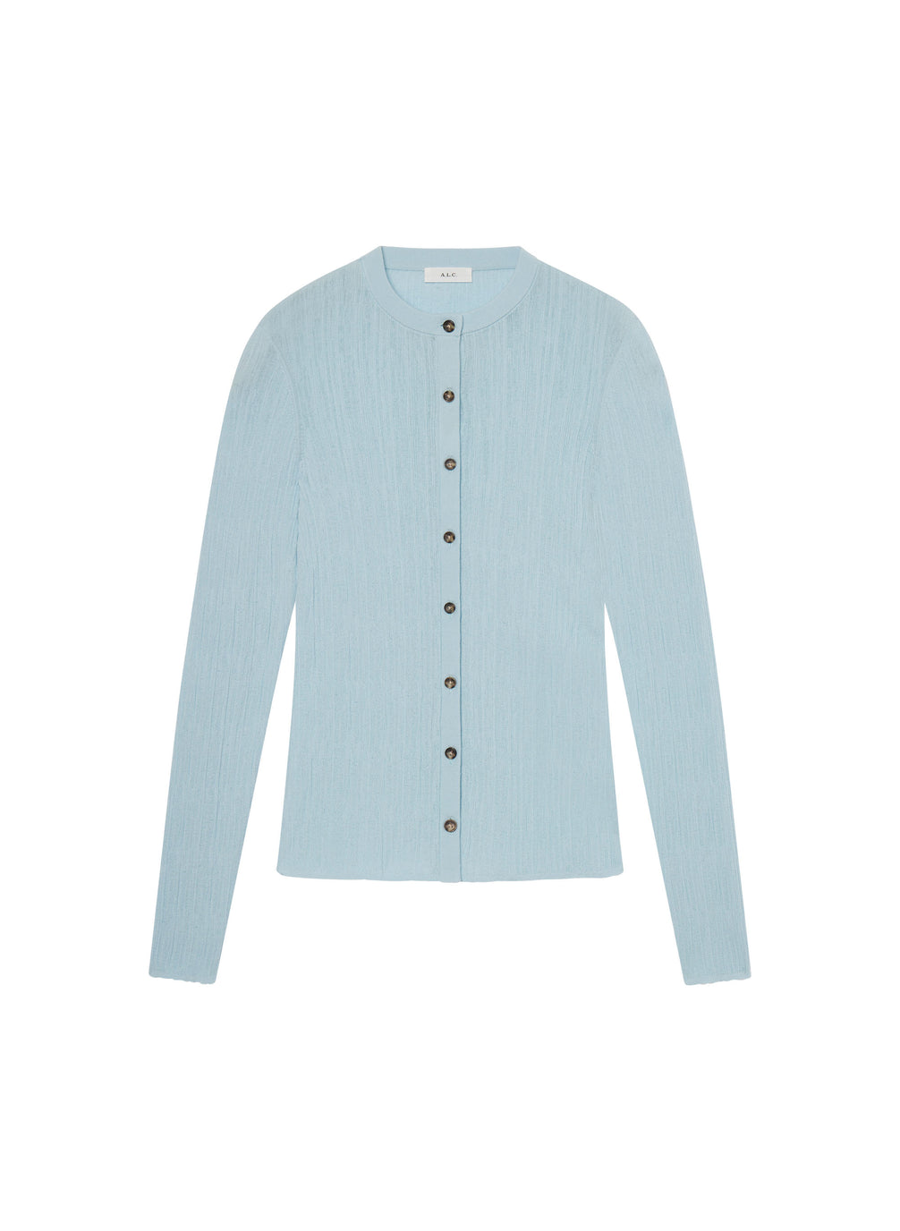 Fisher Fine Cotton Knit Cardigan in Sky Blue