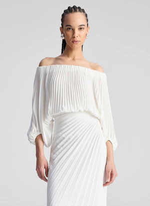 Bianca Satin Pleated Maxi Skirt in Whisper White