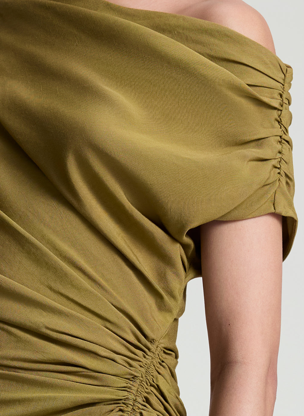 The Poppy Dress is crafted from our drapey linen-viscose blend—breezy yet structured fabric lends natural movement—in a warm, earthy hazel tone. Designed with a fluid, asymmetric silhouette, this off-the-shoulder mini features a softly draped neckline and artful ruching along the side that enhances its sculptural shape. This style runs true to size. Shop Dresses.