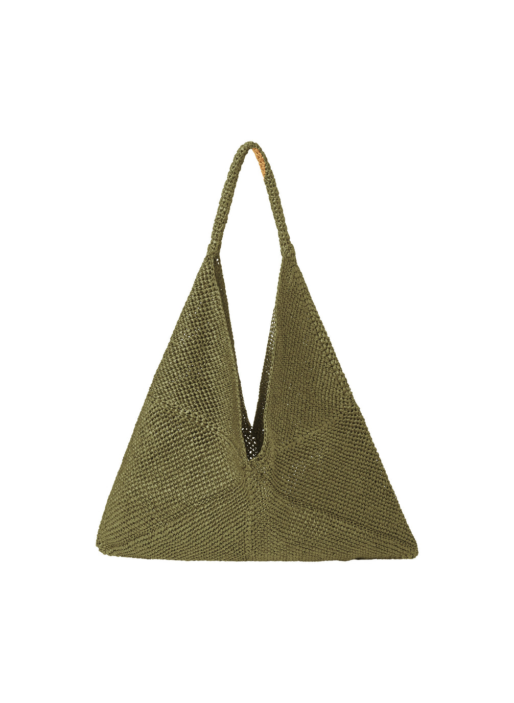 The Sid Bag is crafted from raffia in a muted hazel hue. This spacious shoulder bag features a sharply structured geometric silhouette that can be styled multiple ways—carry it as a shoulder bag or fold it over into an easy clutch. A woven tubular handle and unlined interior keep the look relaxed and lightweight. Shop Accessories.